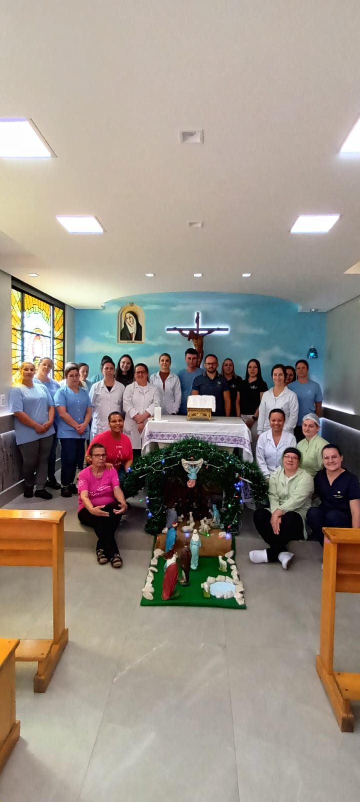 Celebração Natalina com os colaboradores, na Capela do Hospital Nossa Senhora das Dores, em Capinzal/SC.