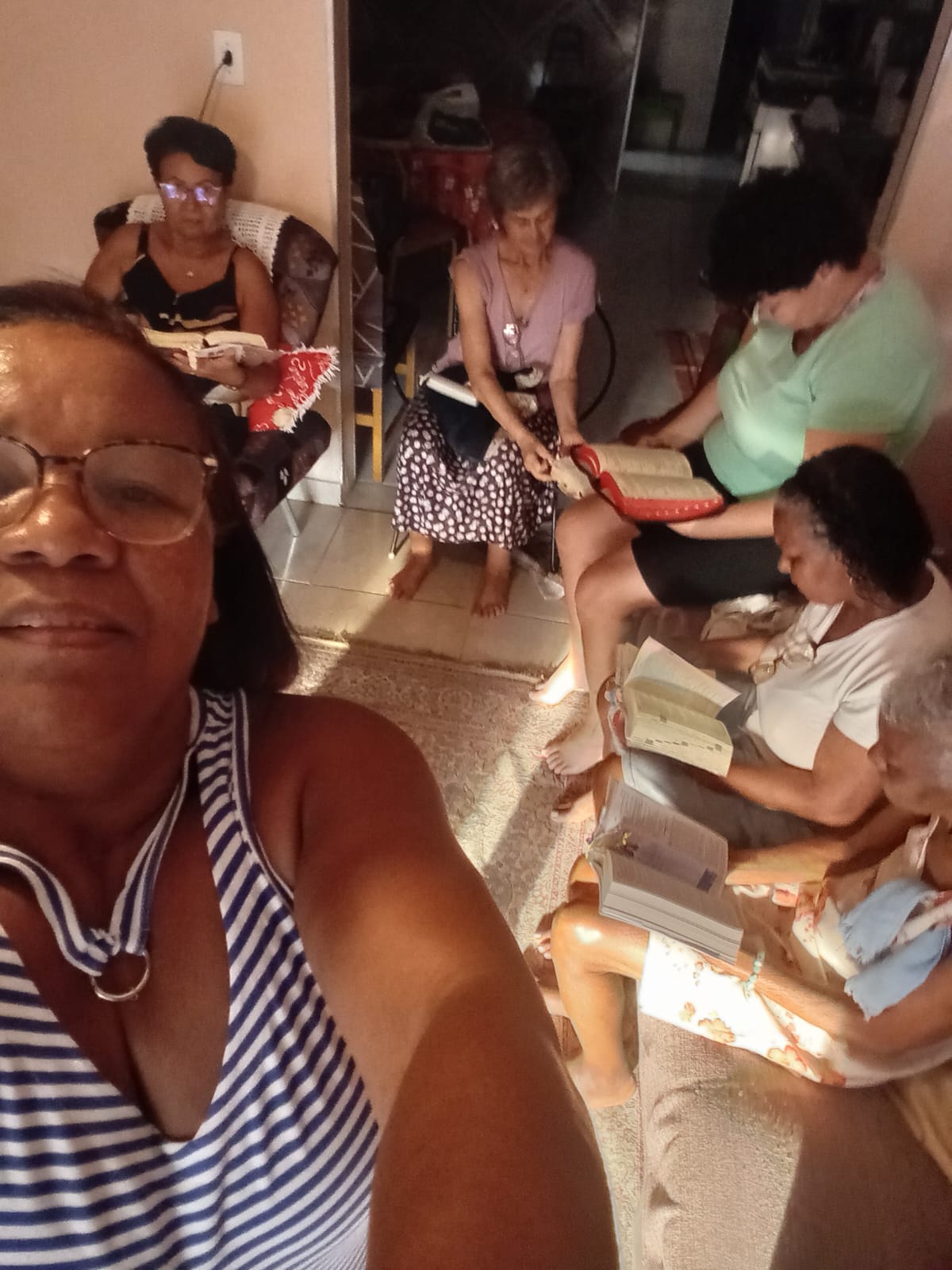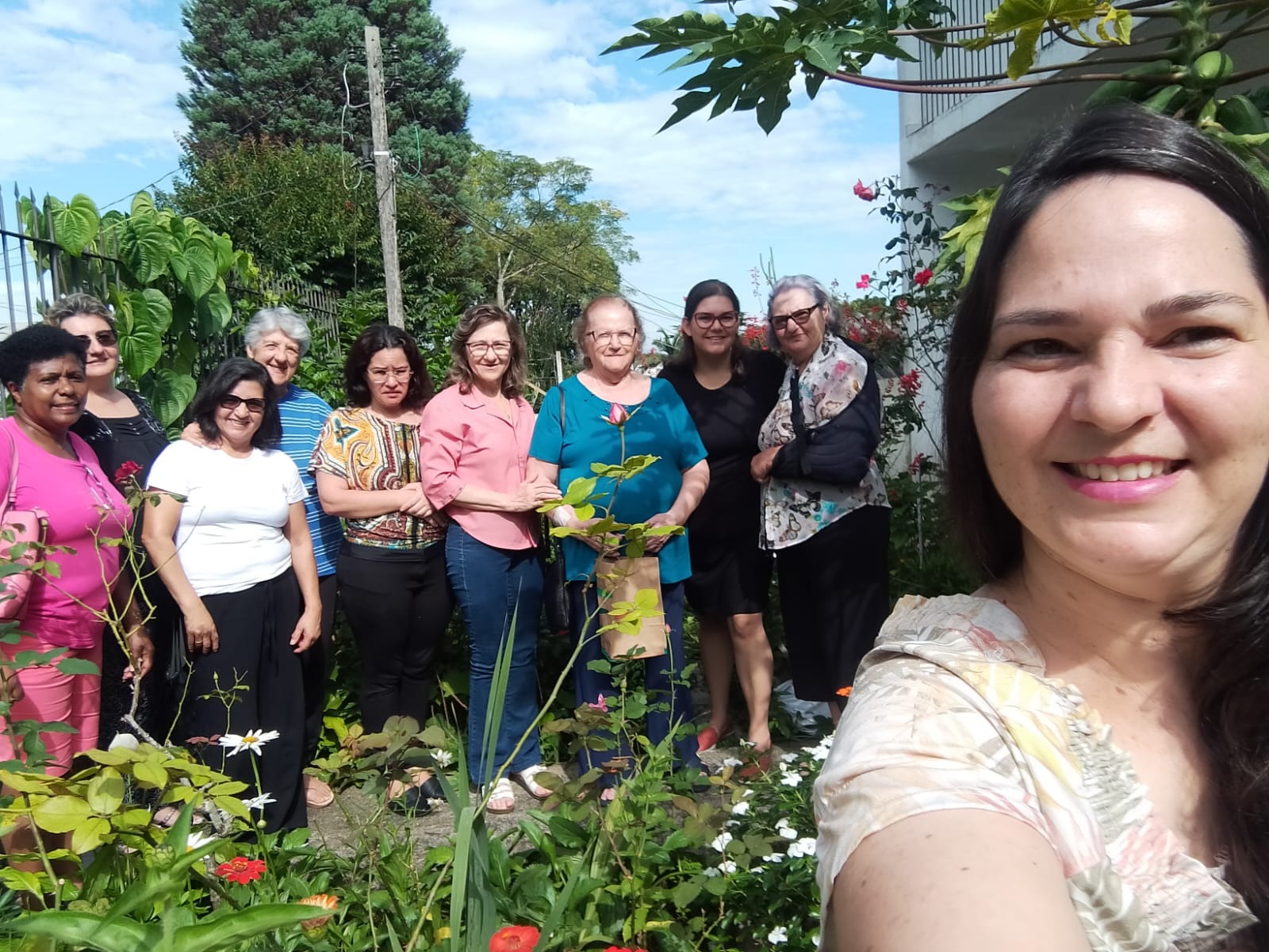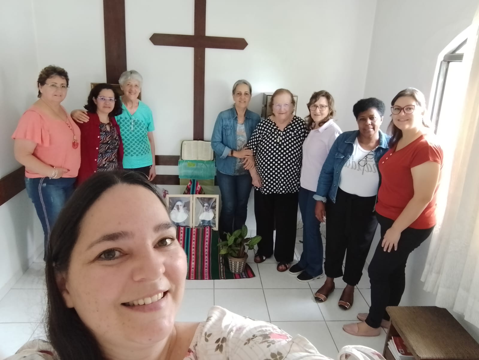 Grupo da Associação Nossa Senhora das Dores de Curitiba reunido na comunidade das Irmãs da Congregação das Servas de Maria Reparadoras.